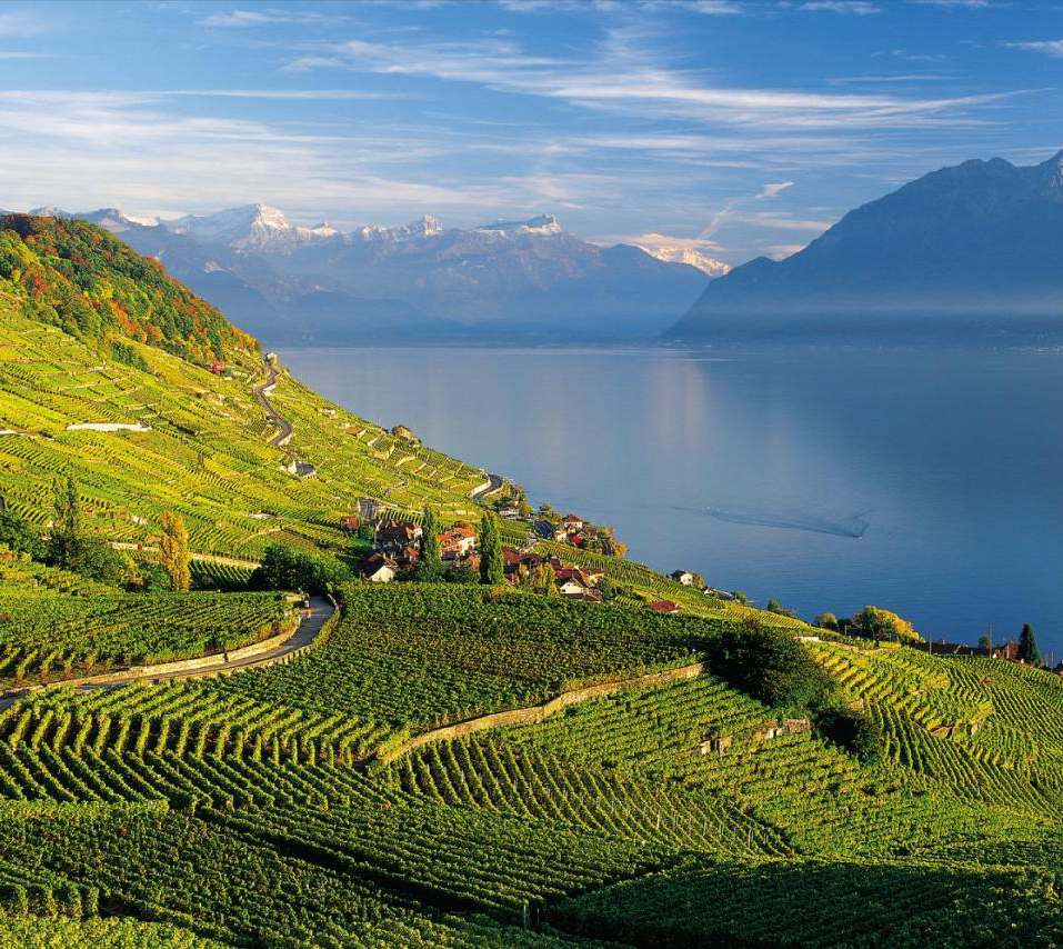 Lavaux (UNESCO World Heritage Site). 15min by train from Lausanne. For a nice walk in Lavaux take the train to the village of Chexbres and walk down the terrasse winyards until the village of Saint-Saphorin, for example.